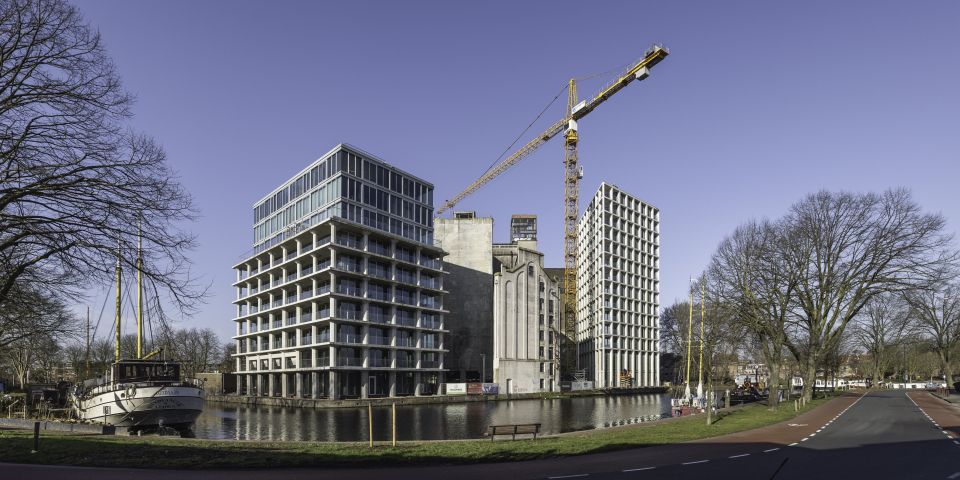 De Meelfabriek in Leiden ondergaat een grootschalige transformatie, waarbij een industrieel gebouwencomplex wordt herontwikkeld tot multifunctioneel woongebied (fig. 2). Oude monumentale gebouwen worden gerenoveerd en er komen nieuwe gebouwen bij. In dit tweede artikel van een serie van drie wordt het constructief ontwerp van twee nieuwe bouwwerken toegelicht: de parkeergarage en de Singeltoren.
