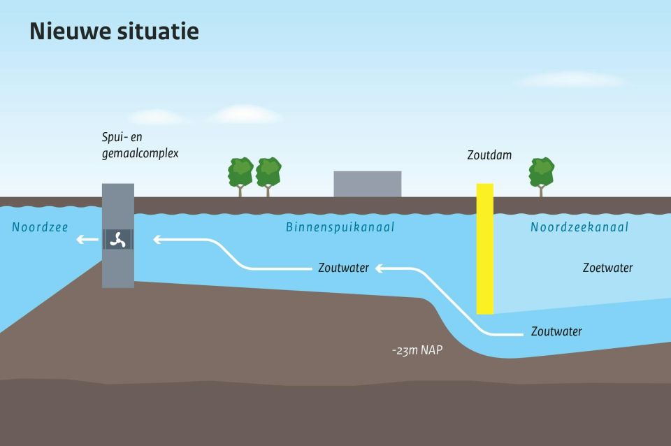De Nieuwe Zeesluis IJmuiden, de grootste zeesluis ter wereld, is in januari 2022 geopend. De indringing van zout zeewater beperkt echter het gebruik van de sluis. Iedere schutting leidt namelijk tot een grote hoeveelheid zout in het Noordzeekanaal. Daarom is de grootste 'zoutdam' ter wereld gebouwd. Deze dam voorkomt, door de selectieve onttrekking van zout water, de verdere verzilting van het Noordzeekanaal en het achterland.