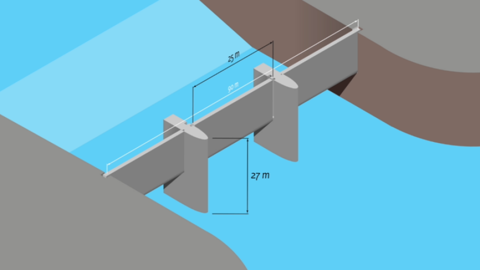 De SO-constructie bestaat globaal uit twee landhoofden, drie wanden van ieder circa 28 m breed en 17 m hoog, een beweegbare zakdeur en twee pijlers van 27,5 m hoog (fig. 3). De totale scheidende constructie is circa 90 m breed. Tussen de wanden en de bodem bevinden zich op grote diepte (vanaf niveau NAP -16 m) openingen.
