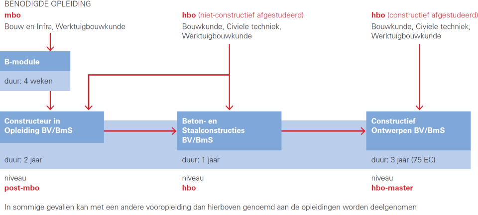 Begin jaren 2000 signaleerde zowel Bouwen met Staal als de Betonvereniging een groeiende vraag naar constructeurs met een breder profiel. In de praktijk werkten ingenieurs steeds vaker aan projecten waarin staal en beton samenkomen, terwijl de opleidingen tot dan toe sterk materiaalgericht waren ingericht. De oplossing werd gevonden in (aanvankelijk) twee gezamenlijke constructeursopleidingen, een voor niet-constructief afgestudeerden (eerst Betonconstructeur BSEng/Staalconstructeur BSEng, nu Beton- en Staalconstructies BV/BmS), en een voor constructief afgestudeerden (eerst Constructeur MSEng/PMSE, nu Constructief Ontwerpen BV/BmS). Met docenten die zelf actief zijn als constructeur of adviseur. Wie de volledige opleiding Constructief Ontwerpen BV/BmS afrondt, krijgt de hbo-mastergraad, Master of Science (MSc).