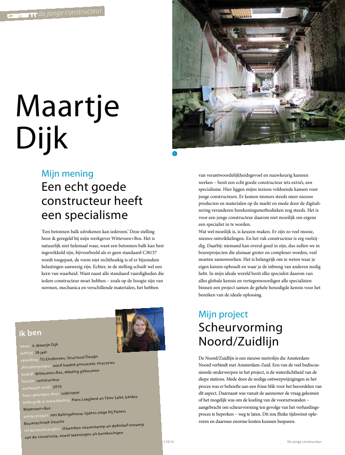In deze nieuwe rubriek maken we kennis met jonge constructeur Maartje Dijk. Ze deelt zijn mening over het vak en belicht een van zijn eerste projecten.