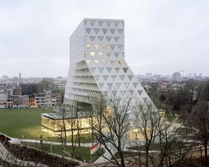 Foto 1 De 59 m hoge kantoortoren is over acht verdiepingen naar het zuiden verdraaid (foto: Maxime Delvaux)
