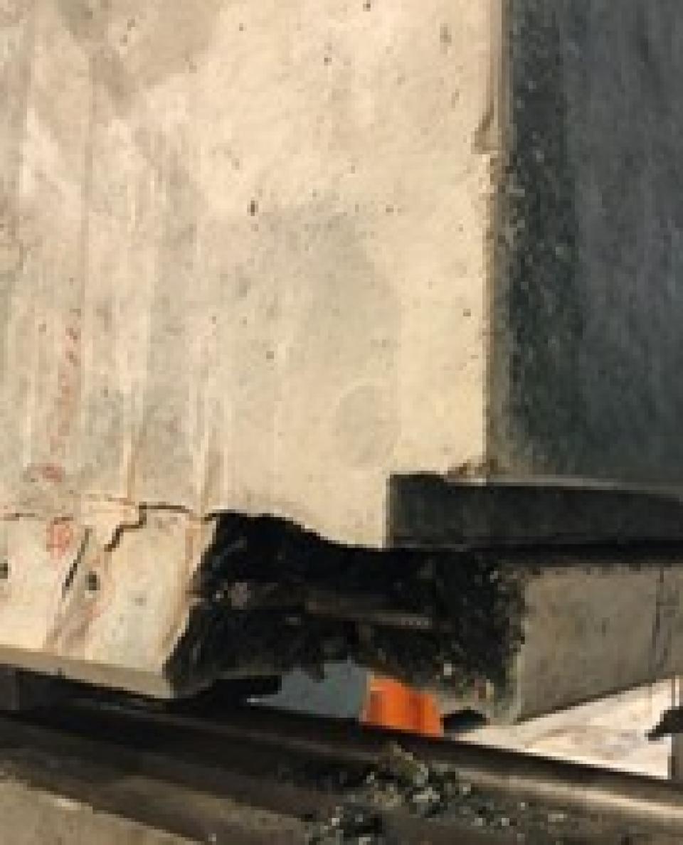 Het faalmechanisme van zowel STS_1 als STS_2 kan worden gekenmerkt door de combinatie van een buigscheur en een onthechtingsscheur tussen de druklaag en de prefab ligger (foto 16a en fig. 16b). Slippen van voorspanstrengen werd ook waargenomen (foto 16c). Daarnaast werd voor STS_1 plaatselijk betonstuik waargenomen in de flens aan één einde van het proefstuk (foto 16d).