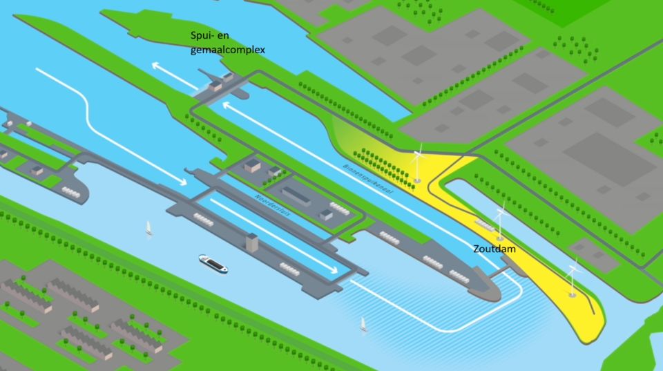 De Nieuwe Zeesluis IJmuiden, de grootste zeesluis ter wereld, is in januari 2022 geopend. De indringing van zout zeewater beperkt echter het gebruik van de sluis. Iedere schutting leidt namelijk tot een grote hoeveelheid zout in het Noordzeekanaal. Daarom is de grootste 'zoutdam' ter wereld gebouwd. Deze dam voorkomt, door de selectieve onttrekking van zout water, de verdere verzilting van het Noordzeekanaal en het achterland.