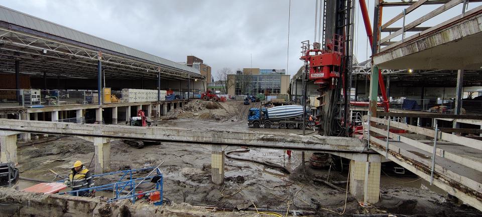 Foto 1 Aanzicht betonbalk na verwijderen kelderdek, foto gemaakt tijdens realiseren funderingspalen TX2