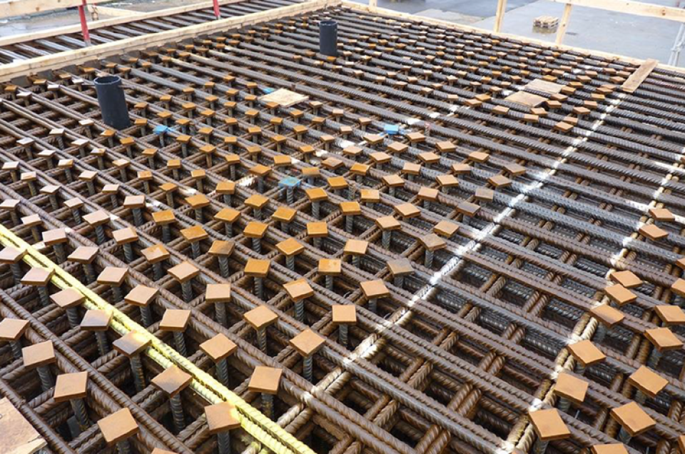 Het toepassen van kopdeuvelstaven (T-heads) als dwarskrachtwapening in vloeren levert in de uitvoering een hoop voordelen op ten opzichte van beugelwapening of opgebogen wapening. Door nieuw inzicht blijken de voorwaarden voor plaatsing minder streng dan aanvankelijk gedacht: de ankerplaten mogen tussen de hoofdwapening worden geplaatst, in plaats van eronder. Het aanbrengen is daardoor eenvoudiger en minder foutgevoelig. Dit inzicht werd toegelicht door Joost Walraven bij een presentatie op een Stubeco/Stutech/Stufib-bijeenkomst.
